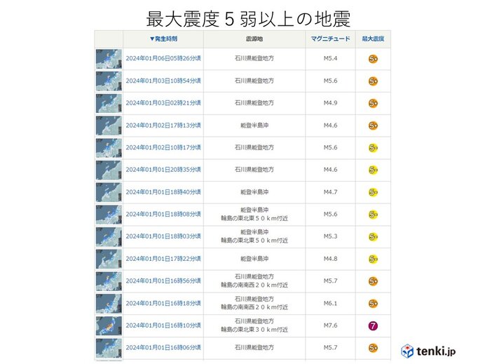 『令和6年能登半島地震 元日から震度5弱以上は14回 』についてまとめてみた